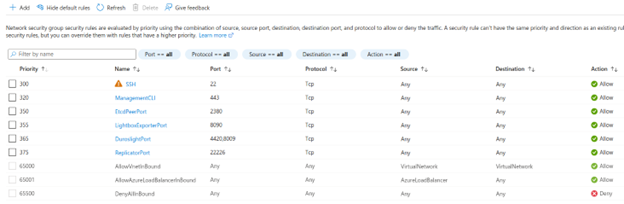 During deployment, we deploy a network security group on the VM level that includes the required inbound and outbound connections:
