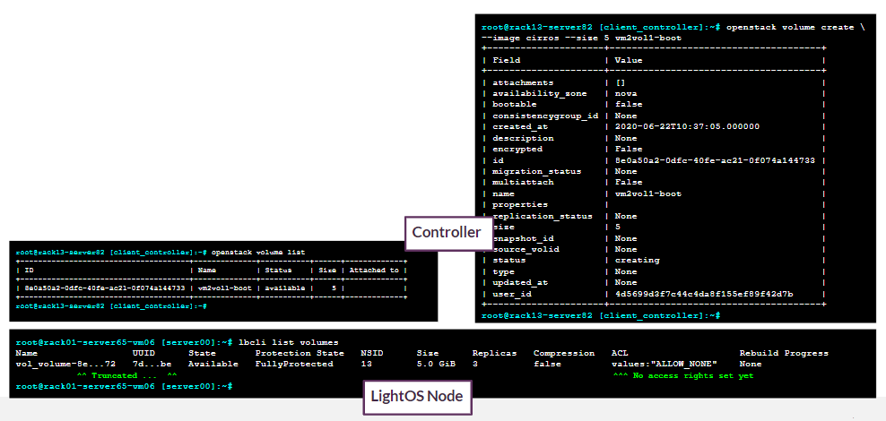 Live migration involves first creating a volume from an image through Cinder. This is visible on both Lightbits and OpenStack.