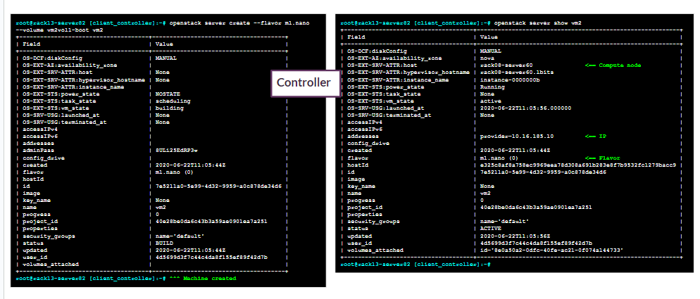 openstack server create --flavor m1.nano --volume vm2vol1-boot vm2
